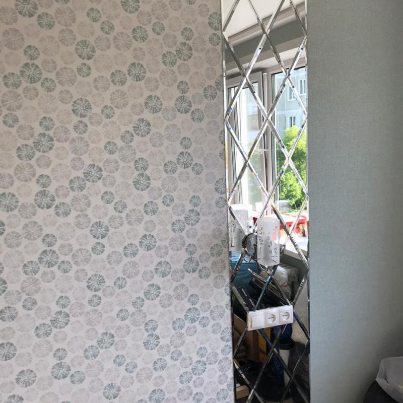 Использована серебристая квадратная зеркальная плитка 18х18.